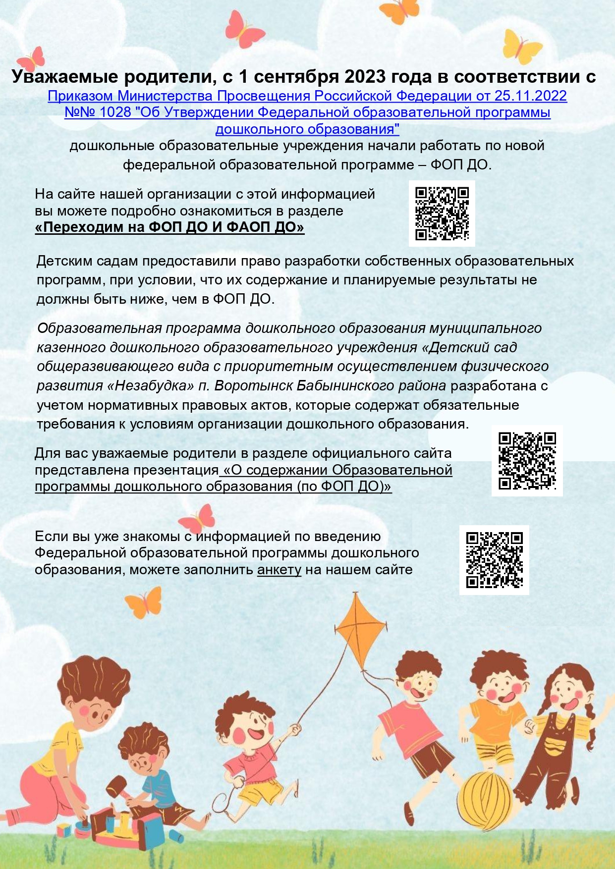 Администрация МКДОУ «Детский сад «Незабудка» уведомляет Вас о зачислении Ваших детей в детский сад: